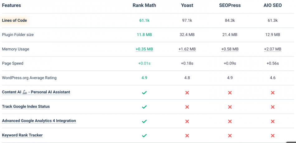 Rank Math was developed by a team who also saw that Yoast was getting heavy, and they looked to rebuild the feature-set with lighter and modern coding practices. Rank Math proudly states on their own website: